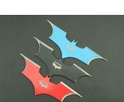 蝙蝠三色飞镖 钢材:3Cr13Mov 长度:14.5cm 刃宽:5cm(一边) 刃厚:2.5cm 总重:210g(含包装) 表面:氧化黑色+红色+蓝色 刀套:尼龙套 其它:三支装