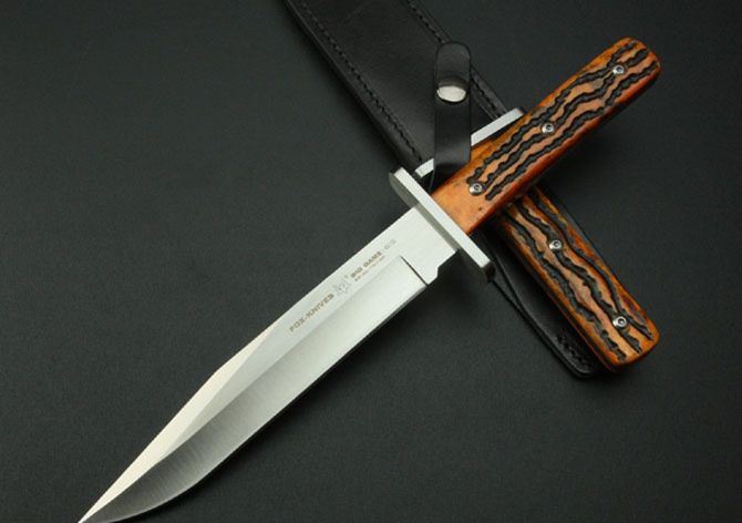 狐狸—601CE战术直刀 全 长:317mm 刃 长:175mm 刃 宽:32mm 刃 厚:5mm 刃 材:AUS-10A 重 量:460g 硬 度:58-59HRC{真空热处理) 表 面:钢本色 柄 材:橙色骨片 刀 鞘:手工进口头层牛皮刀鞘(黑色) 出 品:狐狸OEM