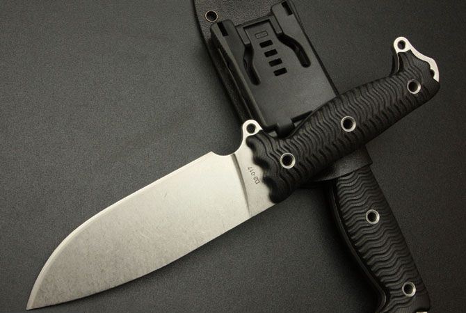 全长:27cm 刃长:13.5cm 刃宽:4.3cm(最宽处) 刃厚:0.48cm 刃材:D2钢 硬度:50HRC 表面:石洗 柄材:G10 柄长:12cm 总重:440克(含刀套) 附件:K鞘