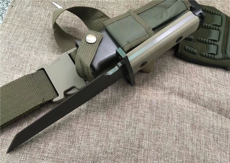 新版Bayonet D8枪刺 全 长: 32cm 刃 长: 16cm 刃 宽: 3.7cm(最宽处) 柄 长: 13cm 刃 材: D2钢 硬 度: 58-59HRC 表 面: 钛离子 刃 厚: 0.60cm 柄 材: 龙骨结构,绿色G10柄片 净 重: 560g 总 重: 1040g(包括纸盒和刀鞘) 包 装: 原装纸盒 其 他: 配附ABS刀鞘 品 质: 品质卓越