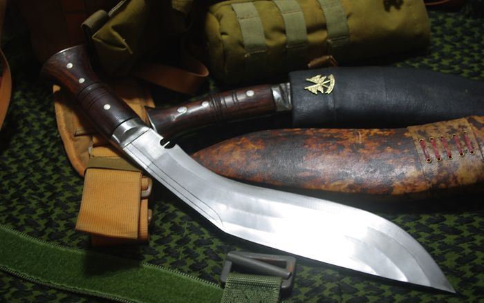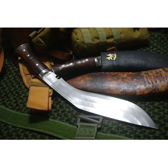 重制中东尼泊尔刀 总长45厘米 刃长30 厚1厘米 红木柄夹片 牛皮鞘 2种颜色刀鞘 手工刀身刻槽