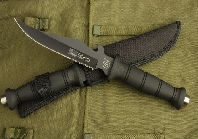 SR箭鱼 全 长: 28.5cm 刃 长: 16cm 刃 宽: 3.5cm(最宽处) 刃 材: 420 硬 度: 55 表 面: 黑漆 刃 厚: 0.4cm 柄 长: 12.5cm 柄 厚: 2.5cm 柄 材: 橡塑(手感很好) 重 量: 180克