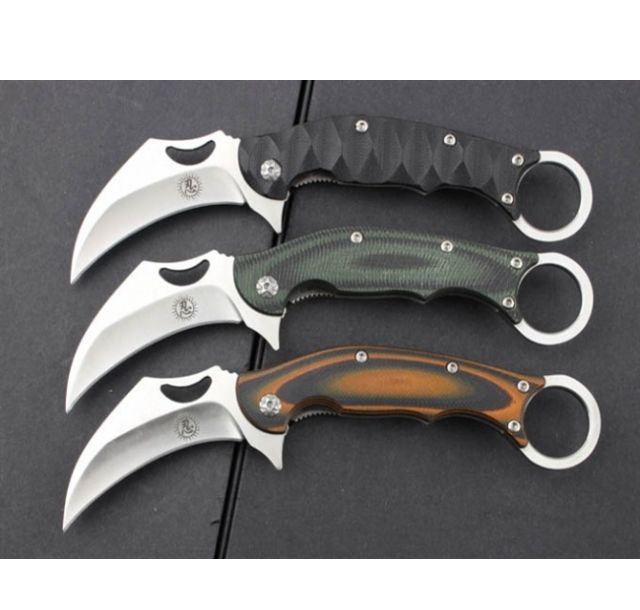 忍者神爪刀(黑黄柄、黑绿柄) 全 长:200mm 刃 长:75mm 柄 长:135mm 刃 宽:30mm 刃 厚:3.5mm 刃 材:5Cr13 重 量:139g(含包装) 硬 度:57HRC 表 面:砂光 柄 材:G10 锁 型:线锁 其 他:配纸盒