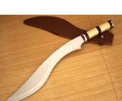 新版大号超镜光月牙弯刀 全 长: 60.8cm 刃 长: 40.3cm 刃 厚: 4.7mm 刃 宽: 6.6cm(最宽处) 刃 材: 420 硬 度: 57HRC 刀 重: 1500克(含包装) 表 面: 镜光 柄 材: 铜+钢+皮+野骨 结 构: 一体龙骨 刀 鞘: 牛皮