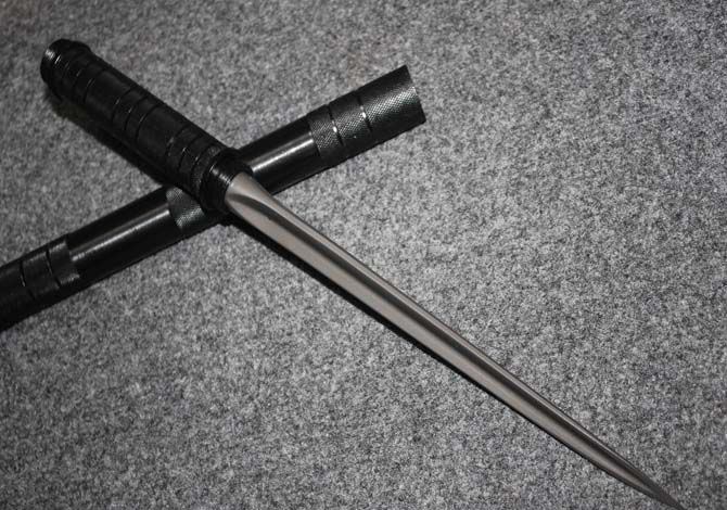 特长版五节三棱刺 完全可以反接上最长145cm 刃 长: 26.0CM 刃 材: 三棱刃不锈钢 柄 长: 13CM 重 量: 1545克 刀 鞘: 尼龙袋 三棱军刀,是三棱军刀的狂想款式,充满着灵动和邪恶的样式