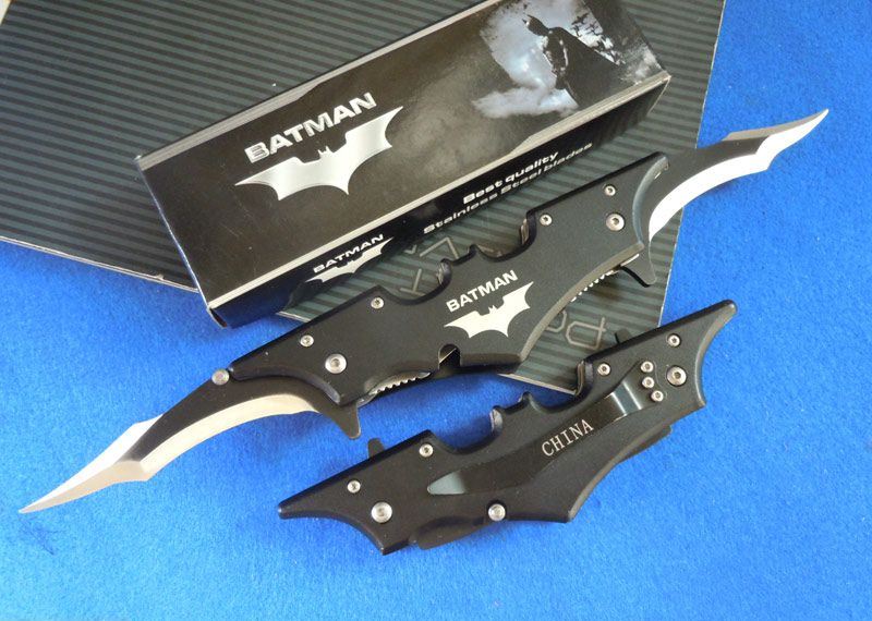 蝙蝠侠双刃战刀(白、黑、粉、红色) 全长:28CM 刃长:9CM 刃厚:0.25CM 刃材:3铬13 柄材:铝(氧化蓝) 重量:160克 蝙蝠侠-黑夜骑士之双刃战刀,双刃如同蝙蝠之双翅,自动打开,好莱坞经典电影蝙蝠侠收藏系列