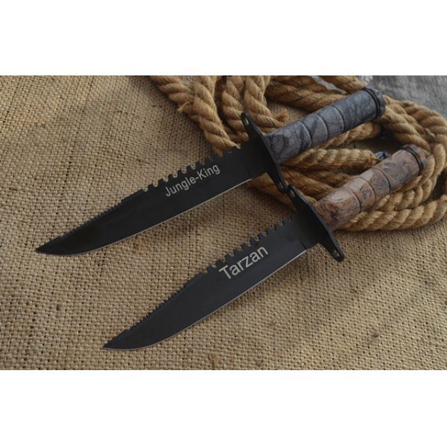 兰博USA丛林野战刀 全 长:375mm 刃 长:230mm 柄 长:145mm 刃 宽:40mm 刃 厚:3.0mm 刃 材:3Cr13 重 量:500g(含包装) 硬 度:57HRC 表 面:氧化黑 柄 材:压铸铝+披覆 锁 型:半自动线锁 其 他:配彩纸盒(尼龙套)(沙漠色,褐色) 带求生套装,因人工肉眼装较,个别刃会角度倾斜,不能成一直线,介意甚拍哦