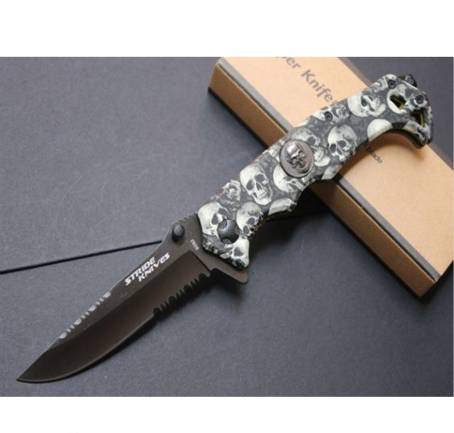 全长:22cm 刃长:9.5cm 刃宽:2cm 闭合:12.5cm 刃厚:0.27cm 钢材:440C 硬度:56HRC 净重:206g 表面:镀钛 柄材:(披履) 锁型:快开 包装:纸盒
