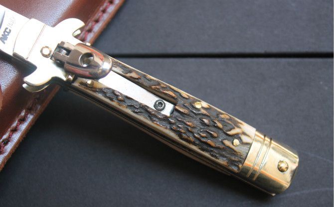 当前位置: 刀网 > 精美小刀 > 弹簧跳刀 > 精仿意大利8英寸鹿角柄弹跳刀