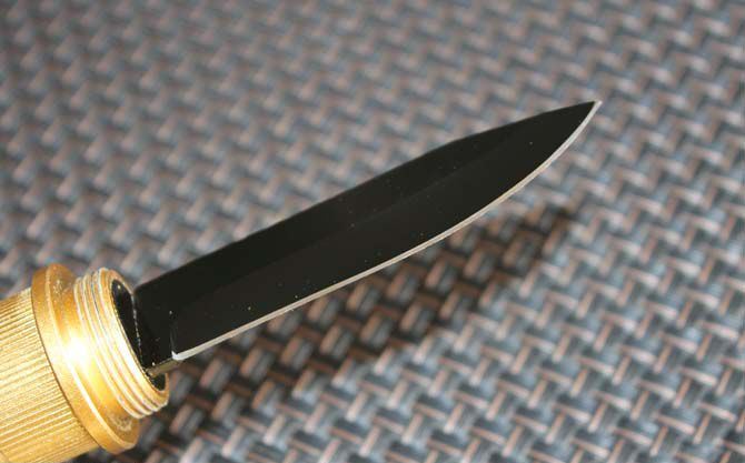 全 长:440cm 反接长度:66CM 刀刃长:10.2cm 刀刃宽:2.5cm 刃 长:235c 柄 长:172cm 刀 型:三棱刺 刃 材:7Cr17Mov 柄 材:土豪金色 刀 鞘: 尼龙鞘+彩盒 毛 重:750g