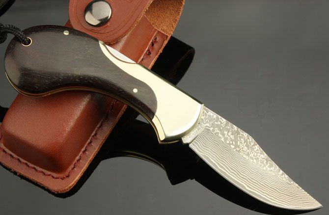 大马士革-蜗牛 全 长: 17.5cm 刃 长: 7cm 柄 长:10cm 刃 宽: 2.5cm(最宽处) 硬 度: 59HRC 刃 厚: 0.27cm 净 量: 160克 毛 量:210克 表 面: 纯手工制造 柄 材: 白铜+黑檀木 锁 闭:传统式制尾锁
