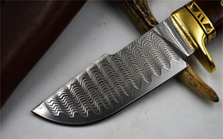 刀刃采用进口VG_10层大马士革钢,经真空热处理后硬度可达58至60HRC,达到超强的锋利度,刮毛,一刀过水瓶不在话下。配置意大利A级植鞣革雕刻手工牛皮套,厚实,高档。确保每位刀友收到都是高品质大马士革钢刀。