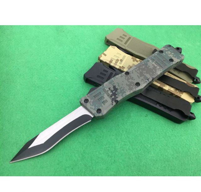 伤齿龙A161反恐精英冲锋全刃跳刀 全长:23.5厘米 刃长:9.5厘米 柄长:14.5厘米 刃厚:0.3厘米 净重:148克 带包装重量:440克 颜色:军绿迷彩、黑色、黄迷彩、军绿色柄