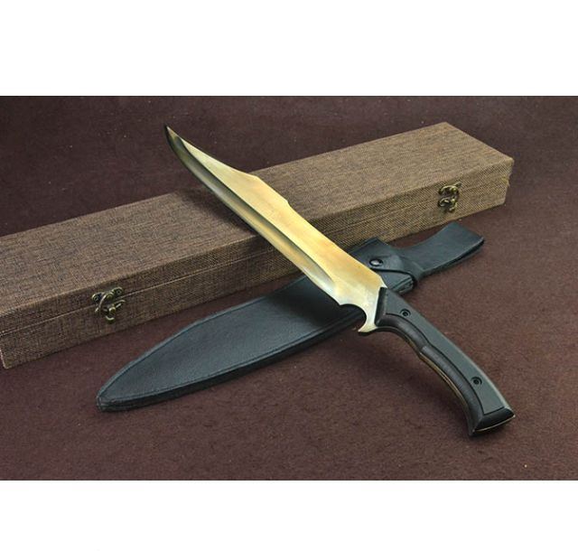 龙泉手工砍铁金苍狼刀,土豪金啊