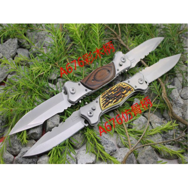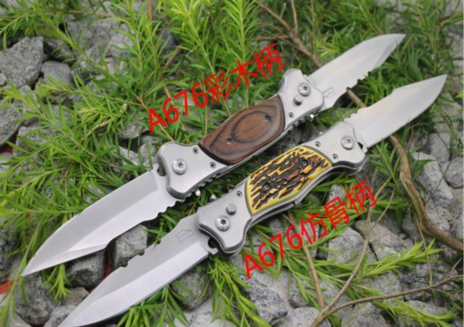 俄罗斯民族A676双刀侧跳(彩木和仿骨柄)