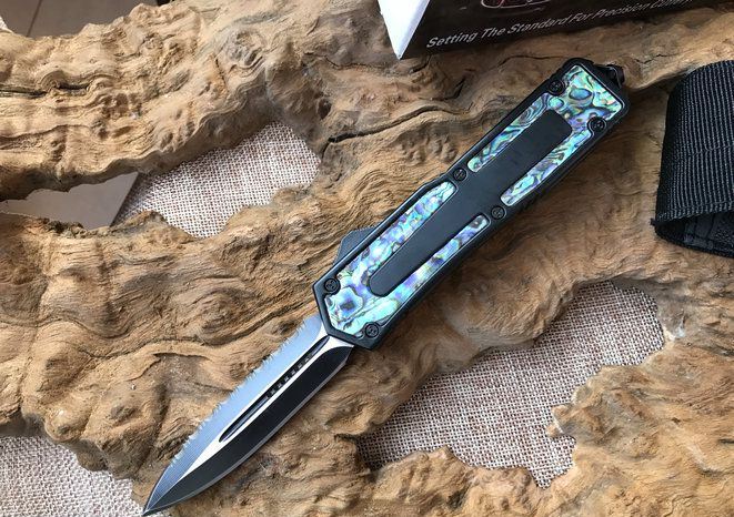 圣甲虫边齿鲍鱼壳珍藏版直跳刀 开启长度:22CM 合起长度:13.5CM 刃 厚:0.3CM 硬 度:57 HRC 刃 材:440c 表 面:发黑 把 手:航空铝合金+鲍鱼壳 净 重:220克(整刀) 毛 重:300克(含包装物) 开 合:双动作,直推开关,自动弹出和收回(刀头比较牢固,只有很轻微的摇动) 包 装:耐磨专用战术尼龙套 口袋刀夹:弹簧刀夹 玻璃敲击器:钨质玻璃敲击器