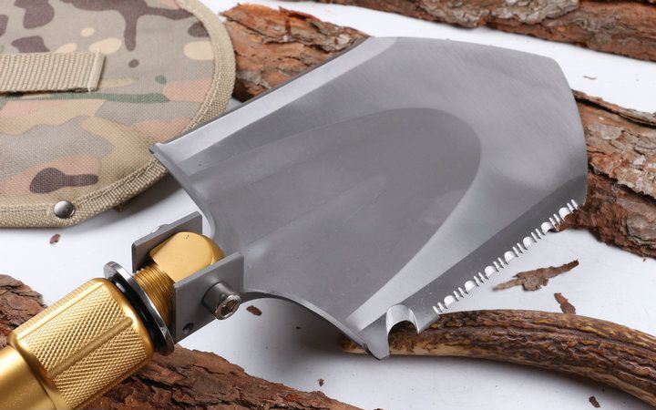 功能:有铲,锄 ,锯,刀,开瓶器,打火棒,指南针等功能,在生产工艺上采用上好淬火高碳钢,增加强度,抗磨损,抗腐蚀,耐高温等优势.有把铲在手,登山,外出永不怕