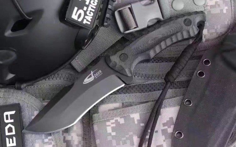 DEER神鹿直刀(黑钛、石洗) 全 长:24.5CM 刃 长:12CM 柄 长:12.0CM 身 最大宽度:3.6CM 刀 厚:0.6CM 刃 面:黑钛/石洗 刀 重:400克 毛 重: 650克(含k鞘) 钢 材: 8Cr13Mov 硬 度:56-58CHR 刀 柄:电脑锣G10防滑手柄,黑色 刀 套:K鞘
