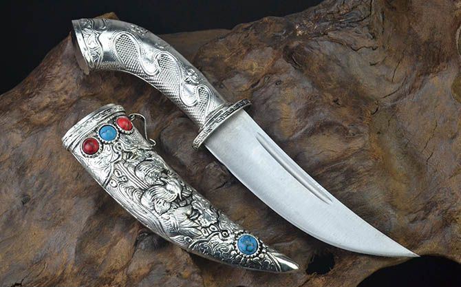 鞘材:采用藏银纯手工制做,内装木芯以保护刀刃