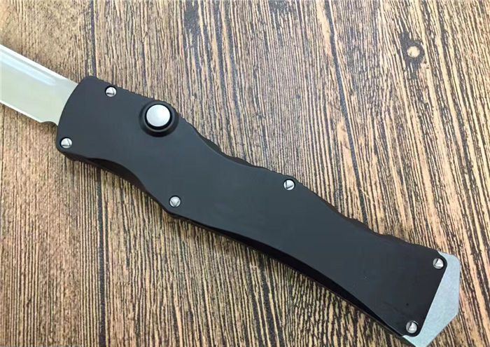 微技术炫光4黑色柄T头跳刀 全长:23.5 CM 刃长:9.8 CM 刃宽:1.7 CM 刃厚:0.32 CM 刀刃材质:D2 柄材:铝合金 刀型:直跳 锁定类型:按钮锁 重量:188克(含包装) 附件:Kydex鞘,刀油布,彩盒 整刀用CNC,电脑锣,线切割制作而成,手工,精密度非常高