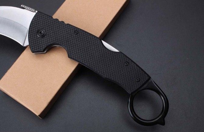 996爪子折刀 全长:230mm 刃长:80mm 柄长:160mm 刃宽:38mm 刃厚:3.1mm 刃材:5Cr15Mov 重量:211g(含包装) 硬度:57HRC 表面:沙光 柄材:钢柄+G10 锁型:背锁 锁型:侧锁 其他:配彩盒