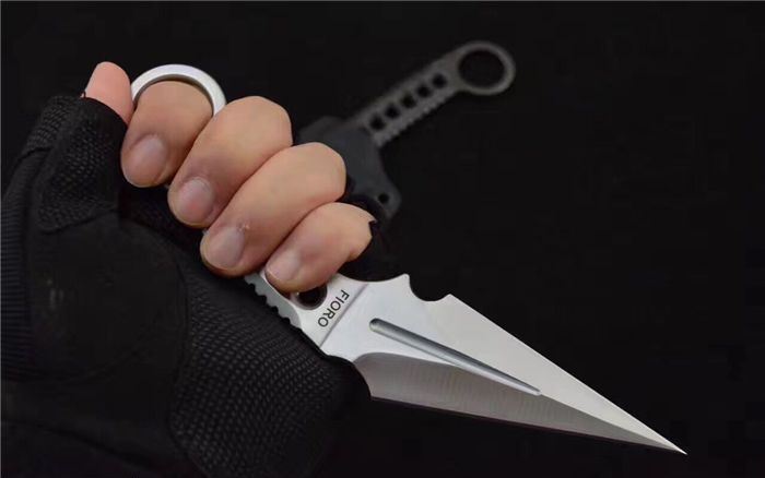 反击者双刃战斗爪刀 全 长:19cm 刃 长:7.9cm,背刃:8.8cm 柄 长:8.5cm 刃 宽:3.7cm(最宽处) 刃 厚:4mm 刃 材:9CR 刀 重:100g 重 量:222g(含包装) 硬 度:58HRC 表 面:砂光和沧桑石洗 柄 材:全钢手柄,经CNC精细处理,可以防滑 其 他:K鞘+黑色礼品