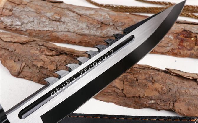 战狼突击队直刀 全长:38.2CM 刃长:25.8CM 柄长:12.4CM 身最大宽度:4.5CM 刀厚:0.58CM 刃面:拉丝+发黑 刀重:452克 毛重:590克(含k鞘) 钢材:7CR15 硬度:57CHR 刀柄:绝缘强化塑胶, 刀套:仿真刀套 其它:彩盒包装 适用户外,开山,求生等功能