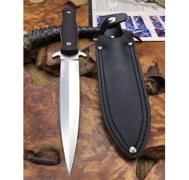 旋风双锋刺刀 全长:30cm 刃长:17cm 柄长:13cm 刃厚:5CM 刃宽:3cm 刃材:D2 柄材:高端太空亚麻纤维 硬度:60HRC 重量:380克 表面处理:砂光