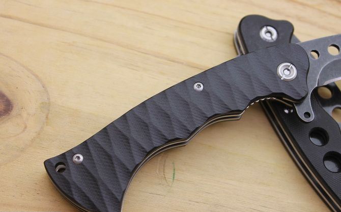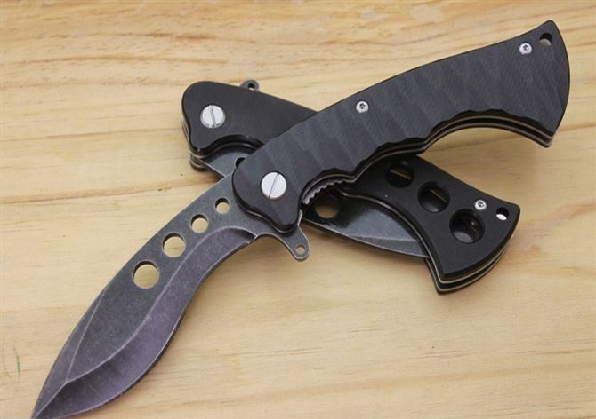 当前位置: 刀网 > 精美小刀 > 战术折刀 > 四眼波浪柄狗腿大折刀黑刃