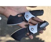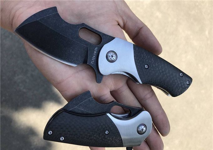TUREN坦克1代折刀碳纤维款 总长:16.5cm 刃长:5.5cm 刃厚:3.5mm 刃宽:3.8cm 钢材:DC53合金模具钢 硬度:60-61HRC 热处理:真空深冷 柄材:碳纤维,快开功能