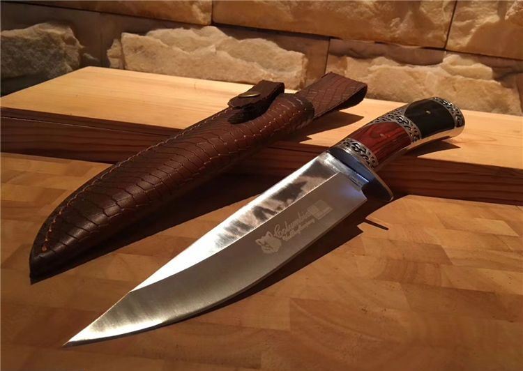 升级版哥伦比亚黑寡妇战术直刀 全 长:30.5cm 刃 长:18cm 刃 宽:4cm(最宽处) 刃 厚:4CM 柄 长:12.5cm 柄 厚:2.3CM 表 面:雕刻 刃 材:3CR13 硬 度:57HRC 柄 材:酸枝木 重 量:480克(含包装) 包 装:高端手工雕花皮套