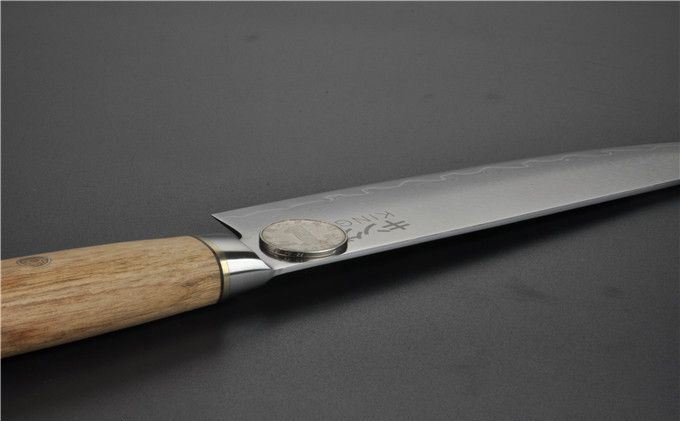 当前位置: 刀网 > 户外刀具 > 手工厨房用刀 > 日本进口厨刀大马士革钢VG10白蜡木8寸