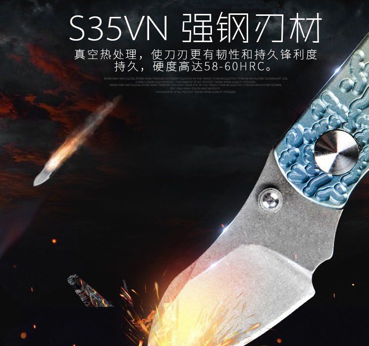 当前位置: 刀网 > 精美小刀 > 战术折刀 > S35VN羊蹄钛柄折刀