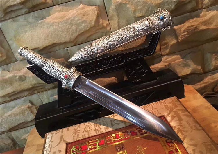 鞘材:浮雕、白铜工艺:比刀工艺精美无暇,刀身采用纯白铜手工雕刻,刀身刻有浮雕龍鹰瑞兽,彰显富贵豪华,不管收藏送礼镇宅辟邪,都是绝佳之选