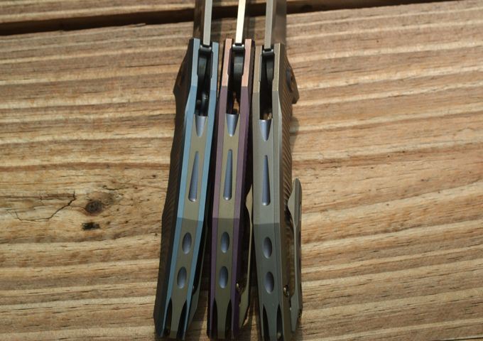 利兵蓝精灵折刀 刃材:M390奥地利粉末钢 柄材:TC4钛合金 全长:196MM 刃长:86MM 刃厚:3.5MM 硬度:59-61HRC(真空油淬热处理+回火2次) 重量:100克 手柄处理:香槟金,天空蓝,紫边金 刀刃表面处理:石洗+拉丝 折叠系统:双排陶瓷轴承快开 附件:抹刀布,刀包 双排陶瓷轴承快开