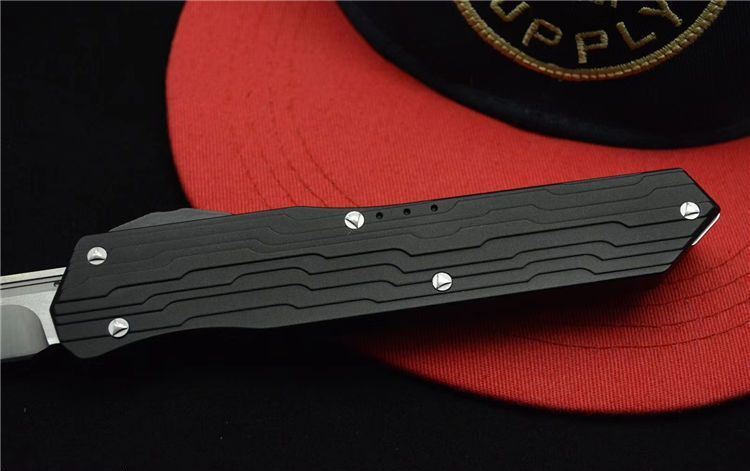 单刃复刻微技术暗码跳刀 全长:245MM 刃长:95mm 刃厚:3.0 刃材:D2 硬度:59±1 处理:真空热处理 柄材:航空铝
