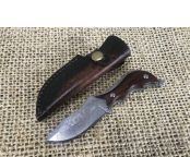 大马士革怪鱼直刀 全长:15cm 刃长:7.5cm 柄长:7.5cm 刃厚:4.9mm 刃宽:2.5cm 刃材:大马士革 硬度:59-60HRC 重量:约250克(含包装) 表面:锻打凹凸大马士革祥云纹原色 柄材:天然彩木