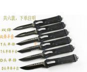微技术伤齿龙D02直出跳刀 全长:24.2cm 刃长:9.8cm 刃厚:2.9mm 刃材:440 硬度:57HRC 刀净重:232克 总重量:350克(含包装物) 表面:发黑 柄材:锌铝合金 刀鞘:尼龙套 锁闭:弹簧直出