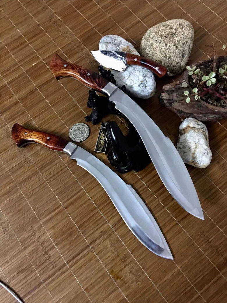 潘大师凹面狗腿刀 总长:41公分 刃长:27.5公分 进口:俄罗斯高速钢 硬度:60 厚度:0.6公分