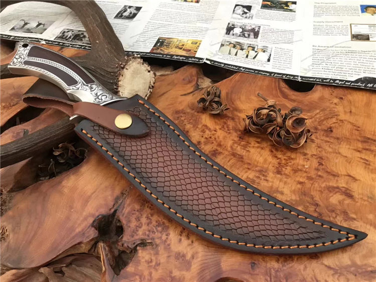 手工缝制高档皮套手柄镶进口微粒黄檀木,非常锋利