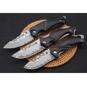大马士革黑狐折刀 全长:20cm 刃长:8.5cm 闭合:11.5cm 刃材:进口大马士革钢 硬度:60HRC 刃厚:3.3mm 柄材:黑檀木 包装配件:礼品盒 刀刃钢料选用进口大马士革钢,限量推出