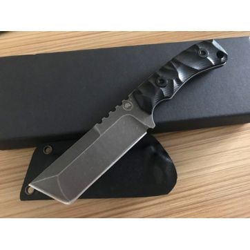 FBI悍马直刀 类型:直刀 全长:20cm 刃长:9.5cm 柄长:9.5cm 刃厚:0.43cm 刃宽:3cm 刃材:5CR15MOV 柄材:防滑G10柄。 硬度:57HRC 重量:300克(含包装) 表面处:灰钛 其他:高档硬纸盒和K鞘