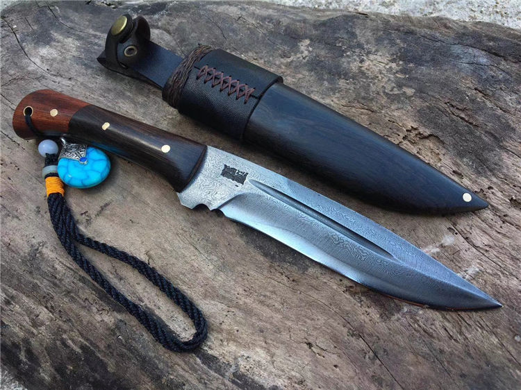 捕猎者户撒刀 全长:27cm 刃长:15cm 把长:11.5cm 刃宽:3cm 工艺:锻打 刃材:百炼花纹钢 护手:黑檀木+红木 鞘材:手工皮套+黑檀木 二次开刃等繁琐户撒手工工序多达几十种!这把刀具的独特魅力当弹尽粮绝之时 枪支再无用武之地此时,刀具便是战士最后的希望,感受着冷兵器之间那份最具野性的搏斗这,就是刀具的魅力之一