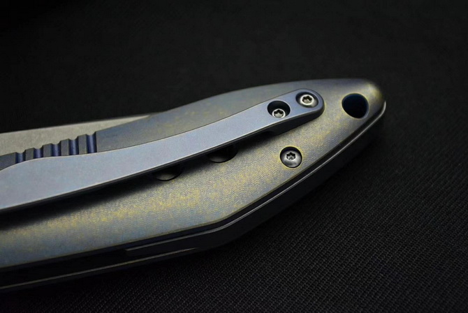 钛合金飞鲨折刀 全长:225mm 刃长:97mm 柄长:128mm 刃厚:4mm 刃宽:27.5mm 刃材:S35VN(100%,S35VN可以测试) 处理材料:钛 叶片处理:石头洗 处理处理:阳极氧化着色 硬度:59-60HRC 系统:球轴承系统 开放:隐藏快速开放系统 净重:155克