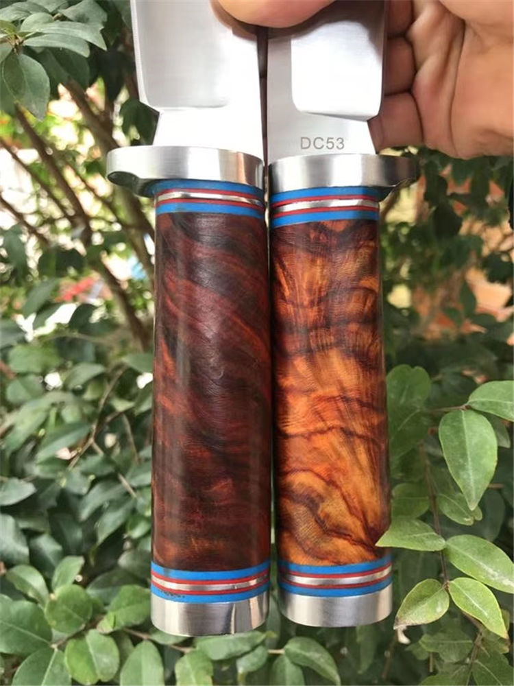 柄材:黄金檀+钢+蓝色G10+红色G10