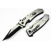 全长:22.2cm 刃长:9.5cm 刃宽:2.5cm 闭合:12.70cm 刃厚:0.28cm 钢材:440C 硬度:56-58 净重:240g 柄材:全钢手工拉丝 锁型:齿轮助力 包装:彩纸盒 产地:国内代工