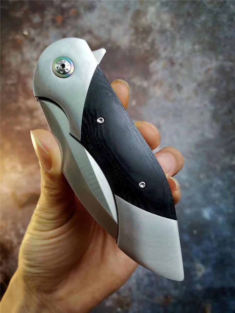 令人非常喜欢一把刀,不仅喜欢这把刀的设计,大气,有型,轮廓分明,而且霸气实用!手柄采用电脑CNC偷空,再装G10片,刀刃采用进口430C钢材,性价比非常不错的。好货不要错过