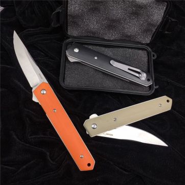 博克Kwaiken轴承快开折刀 总长:212mm 刃长:88.5mm 刃宽:21mm 柄厚:14mm 刃材:9cR18MOV 硬度:58-60HRC 表面:石洗 刃厚:3mm 柄材:G10+钢 净重:130克 滚珠轴承快开系统 Boker Kwaiken以Lucas Burnley刀身定制设计为基础,展现亚洲传统设计的简洁线条和简约美学。这圆滑,超薄的文件夹功能在设计和携带方便,在口袋里方便,每天使用。IKBS滚珠轴承枢轴可快速展开,而直刺刀片的空心研磨使其具有良好的切削性能
