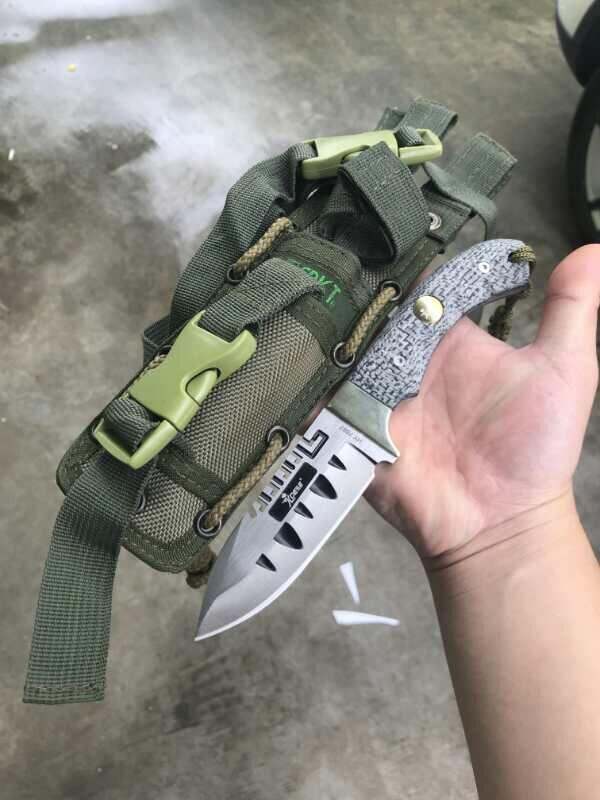 柄材:玻纤,白铜头,求生绳,配高端绑腿挂腰战术尼龙套,内套加硬胶壳防刮