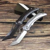 河马折刀 全长:21.5cm 刃长:9cm 柄长:12.5 刃宽:2.4cm 刃厚:0.4cm 刃材:5CR13MOV 硬度:58HRC 表面:镜光 刀柄:全钢+石洗